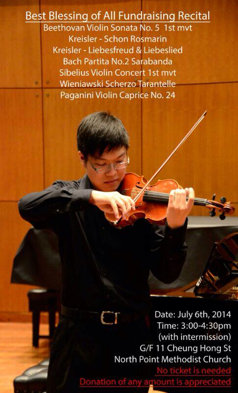 Please come and support our teacher Brian Choi,A very talent and gifted violinist of Hong Kong,This is on July 6th, 2014 afternoon